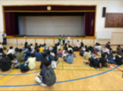 自然環境アカデミーの野村さんから、虫の名前や生態などについてお話を聞き、みんなで捕虫網を手に、草むらや川原を歩き回り、一生懸命虫を探しました。捕まえたバッタや蝶を嬉しそうに虫かごや袋に入れて学校に持ち帰り、今後は、お世話の仕方を図鑑やタブレットで調べて、各クラスで大事に育てていく予定です。